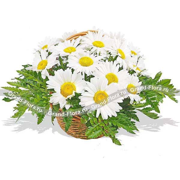 Ромашковая нежность - корзина из ромашек с зеленью