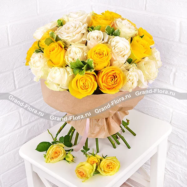 Моё солнце – букет из желтых и белых роз